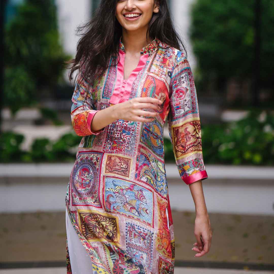A silk salwar kameez is a traditional Indian outfit for women, typically consisting of a silk tunic-style top (kameez), silk pants (salwar), and a matching or contrasting scarf (dupatta)